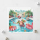 Merry Christmas Tropical Santa Summer Pool Party Holiday Card