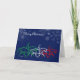 Red and green horses trotting through snowflakes. Merry Christmas on the outside, customise with your own greeting on the inside.
