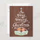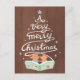 Wish your friends and loved ones a very merry Christmas with this cute and elegant typography postcard! A pair of reindeers with striped scarves are rubbing their noses. The words "A very merry Christmas" is treated with a typography design that makes it look as though it is spiralling out of the Christmas book and topped off with a blue star. The book has Christmas icons such as a Christmas stocking, candy cane, Christmas hat and decorative ornaments. A wooden panel texture for background.