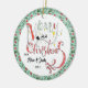 Funn and colourful Christmas themed double sided floral green ceramic ornament with colourful typography "Merry Christmas" and editable text below. The text can be edited by clicking on "personalise this template" and you can change the 3 text groups. This Christmas ceramic ornament is suitable as a keepsake, housewarming gift, or just a colourful addition to your Christmas tree.