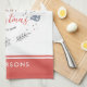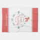 Blue-grey and coral red tones. Optional monogram.
