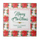 Merry Christmas Typography & Poinsettia Pattern Ceramic Tile