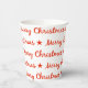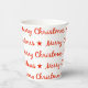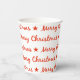 A Merry Christmas typography pattern in casual red script and accented with stars on a white background. It's shown here on paper party cups. You can select your favourite colour for the background and change the size of the pattern if desired. It's a festive design that's appropriate for kids and adults.