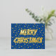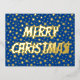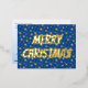 Merry Christmas typography stars navy blue elegant Foil Holiday Postcard