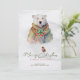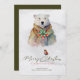 This design is filled with colour and the joyous of the Christmas season, featuring a polar bear with red berries and holly accents. Elegant script typography featuring Red Robin. Vintage vibe, winter wonderland holiday card design.