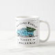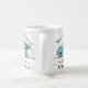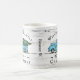 This custom mug with a vintage light blue Truck carrying a Christmas tree in the modern farmhouse style with a rustic white wood board textured backgorund can be personalised with a family name, short "Merry Christmas" message, a monogram on the door of the truck and a name. Makes a great personalised stocking stuffer for Christmas. Designed by © Tim Coffey