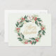 Merry Christmas Watercolor Wreath with Berries Holiday Postcard