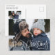 Cute holiday photo postcard with "Merry Christmas" featured at the bottom of the card in a white handwritten script overlay. Personalise the whimsical Christmas postcard with your horizontal photo and family name. The postcard reverses to display your return address, additional photo, and custom message.