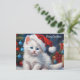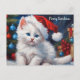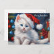 Merry Christmas White Cat and Christmas Tree Holiday Postcard