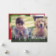 Modern holiday greeting card with "Merry Christmas" in a stylish white script overlaying your photo. Add two additional photos on the back, a personalised greeting to family and friends and your first names.