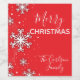 Personalised Christmas wine label design featuring white stylised snowflakes on red background. The text is fully customisable.