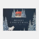 Merry Christmas White Wolf and Red Cabin Scene Doormat