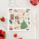 Cute wild animals and holiday Christmas elements on a soft gold background with stars.