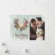 A modern winter floral and snowy background design photo christmas card with cute foxes and a co-ordinating reverse side. Easy to edit or delete the text fields on the front to suit your personal requirements and change the photo to your own.