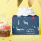 This Christmas winter woodland pattern is a cute, illustrated scene of deer and trees over a navy blue background with a text template to personalise with your loved one's name or family name.