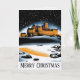 Merry Christmas Wishes holiday greeting card featuring beautiful watercolor rendition of Bamburgh Castle, a famous mediaeval castle on the northeast coast of England in Northumberland County. The verse inside reads "We wish you a Merry Christmas and a Happy New Year". This card is also available as a digital download to send via email or print at home.