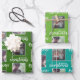 Merry Christmas with 2 Square Photos - blue green Wrapping Paper Sheet