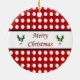 Merry Christmas with a Polka Dot pattern Ceramic Ornament