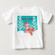 Baby's Christmas Tee with a baby Hippo sitting in the snow wearing a Santa hat and scarf. There are also white Pine trees in the scene and a turquoise snowy sky.