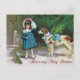 Merry Christmas with Girl and English Setter Holiday Postcard