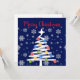 I hope you have a wonderful Christmas season! This invitation, featuring white snowflakes, brightly decorated ornaments, and a Christmas tree, is perfect for the holiday season. The image is set against a dark blue background with white snowflakes.