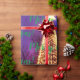 Merry Christmas stylish green typography with bright, outside Christmas tree and beautiful night background, with various trees, deep blue sky and purple lighting repeating pattern design for your festive cheer.