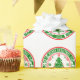 Modern Bauhaus-style Christmas design featuring a bold geometric tree in festive red and green. This holiday emblem is fully customisable so you can add your own family name.