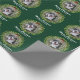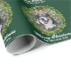 Merry Christmas Wreath Custom Dog Photo Green Wrapping Paper
