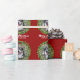 Merry Christmas Wreath Custom Dog Photo Red Wrapping Paper