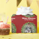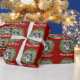Beautiful custom pet Christmas wrapping paper featuring a green holiday wreath on a red background. Replace with your dog's photo in the centre of the wreath or add a personalised cat picture for your friends and family. Merry Christmas is written in white. Customise with your own text underneath.