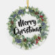 Merry Christmas - Wreath - Hand Painted Watercolor Ceramic Ornament