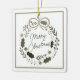 Merry Christmas Wreath Minimalist Modern Ceramic Ornament . Personalise with your details.