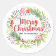 Merry Christmas Wreath Personalised Script Classic Round Sticker