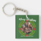 Merry Christmas Wreath Photo Holiday Family Name Key Ring