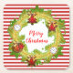 Merry Christmas Wreath & Stripes Square Paper Coaster