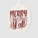 Merry Christmas Y’all Script Burgundy Cream Ornament
