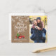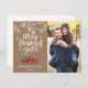 Merry Christmas Y'all Burlap String Lights Mason Jars Holiday Couple Photo Postcard - Watercolor Vintage Red Truck with Christmas Tree
