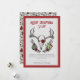 This Western "Merry Christmas Y'All" country Christmas card features hand-drawn western illustrations of a reindeer skull adorned in red roses and festive cacti in black ink. Customisable message and name.