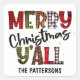 Merry Christmas Y'all Tartan Leopard Print Name Square Sticker