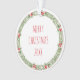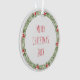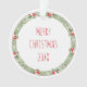 Holiday Wreath Border in green, red berries, beige accents on white background with custom MERRY CHRISTMAS, YEAR in red. Custom FAMILY NAME in red on back. Easy to personalise text, text colour. Great for ANY family, holiday gift, party favour, office gift, teachers, absolute joy for anyone. Festive, Colourful, Fun. A timeless keepsake. Mix and match entire Christmas Ornaments / Holiday Collections by TMCdesigns.