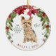 This adorable holiday ornament features a cute watercolor illustration of a yorkshire terrier dog and a festive Christmas wreath. Add your pet yorkie's name and the year to the front, and your favourite photo of your dog to the back!