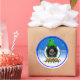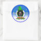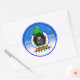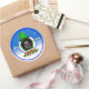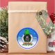 Merry Christmas Zombie! with Elf Hat. (White Blue circle) A goofy holiday twist on the undead! This zombie lumbers forward wearing a bright Christmas elf hat, mixing creepy vibes with cheerful festive spirit. Perfect for spooky holiday fun or humorous seasonal designs.