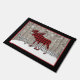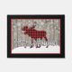 This rustic 18"x24" Christmas holiday doormat has a black border surrounding a barnwood background trimmed in red. It features a large red and black Buffalo plaid moose standing on snow hills with white snowflakes falling behind with the play on words of Merry Christmas being changed to say, "Merry Christmoose". It's sure to get a chuckle from all your guests over the holidays.