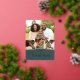 Festive holiday photo card features four of your favourite images arranged in a collage layout. "Merry Christmas" appears beneath in gold foil lettering, along with your names and the year, on a dark forest green background.