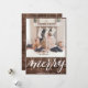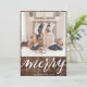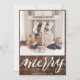 Send customizable and personalized holiday greetings to friends, colleagues and family in simple, chic, elegant and modern photo design festive, natural minimalist style cards! A beautiful calligraphy of " merry " frames on bottom of your photo in front. Below the calligraphy features your custom greeting message from your family name in modern typography. Reverse to reveal a beautiful golden brown trees on rustic dark brown wood background.