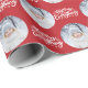 Photo wrapping paper, personalised with your picture and hand lettered with Merry Everything in brushed calligraphy. The photo template is set up to display your picture in a round shape. If you have any problems with picture placement, try cropping your photo to a square and re-uploading it. The background colour is red, which you are welcome to change (just click "edit using design tool").