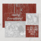 Country Christmas rustic old red painted wood look 2 photo holiday photo card template- Customised photo greeting card with holiday photo templates for two favourite family photos insert. Space for a large family photo on the left front and a smaller holiday photo on the upper right. Merry Everything is printed on the left with classic letters with a black shadow to make the season's greeting stand out. Against dark red painted wood background. From our home to yours holiday text template for family name, family members, and the holiday year. Any of the text may be changed of course. Coordinating barn red painted wood background on the back, too. All-occasion rustic country theme design is great for many western theme special occasions, not just country Christmas greeting cards- Christmas caroling, Christmas party, barn weddings, and more. We also have this rustic country holiday design on other office supplies and gifts. Just visit our online Zazzle shop for lots of other winter, holiday and Christmas designs. Upload your own family photos and enter your own personal information for personalised Christmas photo cards. Change the text colour, font style, or wording if you like.