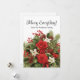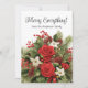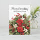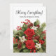 Red and white winter holiday floral with greenery and pine cones "Merry Everything" greeting card. Personalise with your family name and any other text you choose.