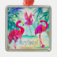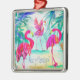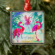 A very Florida Christmas ornament to give and receive. bright playful flamingos watercolor done by artist Jeanine Handley