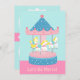 Invite your guests to your girl's birthday with this cute pink and blue merry go house birthday party invitation. The colourful tiny carousel has white horses, stars and sky. Sweet and adorable for a circus or carnival theme party. Your children guests will be excited to receive the invitation! Personalise easily with your party details.